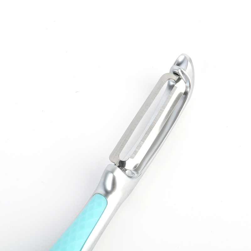 ہلکے نیلے رنگ کے ساتھ یہ منی زنک کھوٹ سبزیوں کے چھلکے کی لمبائی 17 سینٹی میٹر ہے اور اس کا وزن 82 گرام ہے ، جس سے یہ ایک سرمایہ کاری مؤثر ، محفوظ اور قابل اعتماد باورچی خانے کا آلہ بنتا ہے۔ یہ انوکھا اور سجیلا ڈیزائن اسے ایک اعلی معیار کے گھریلو باورچی خانے کے طور پر الگ کرتا ہے۔